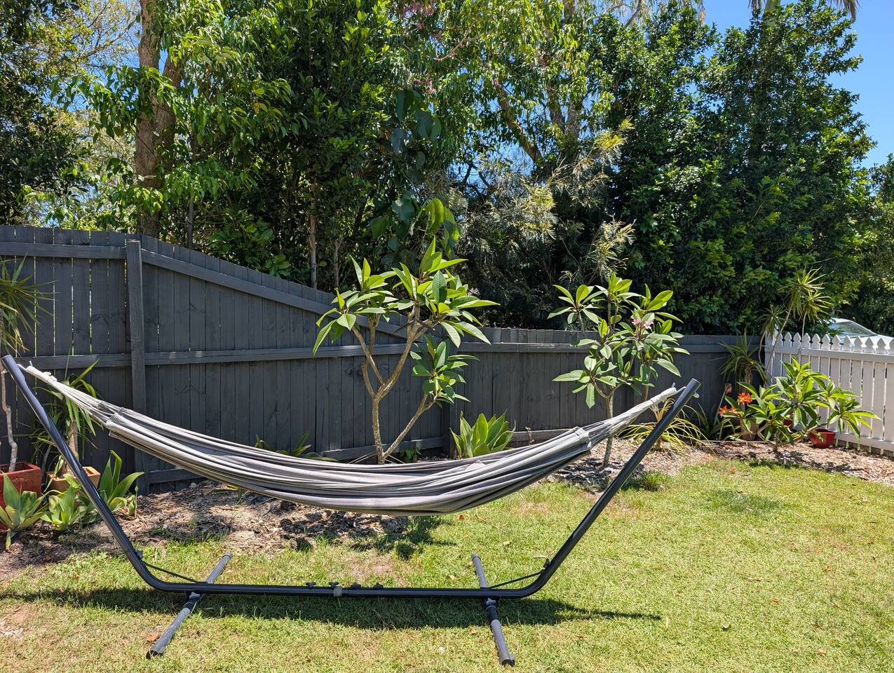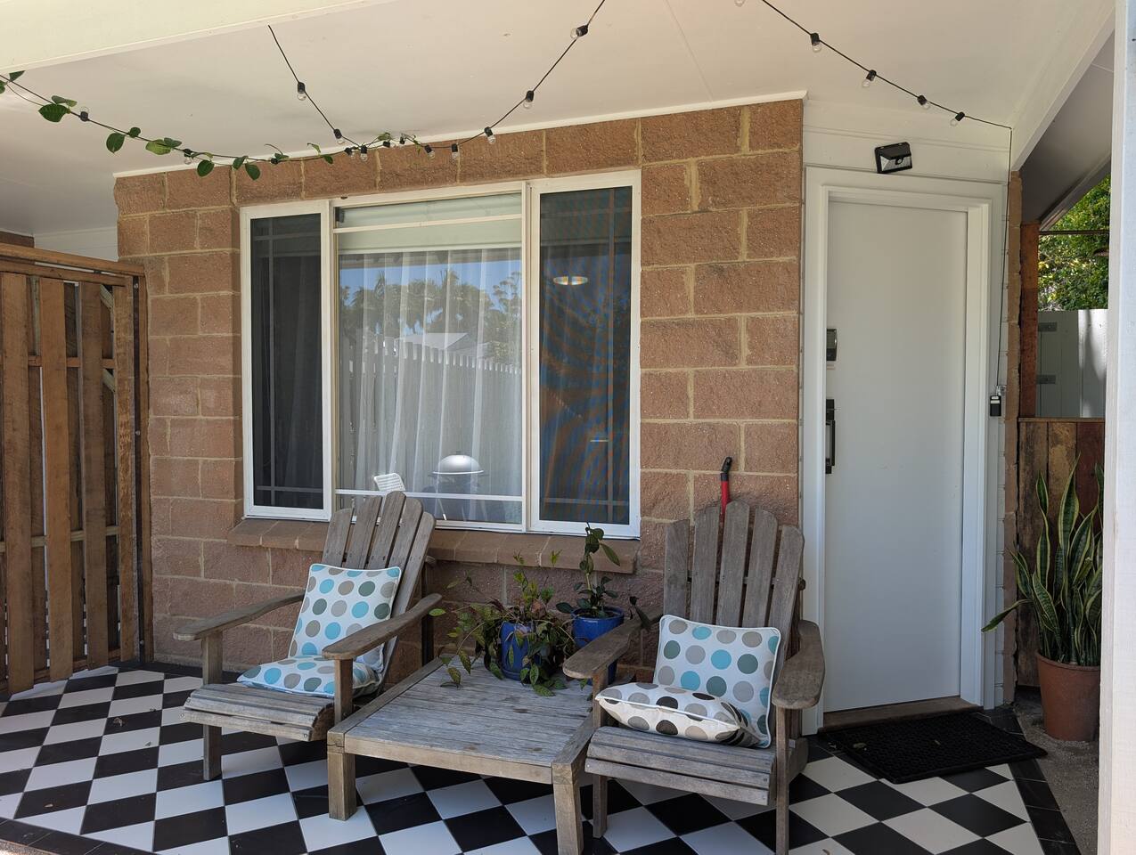 Beautifully located studio near the trendy Arts & Industrial Estate. Enjoy 2 free bikes and a peaceful location. 10 minute walk to everything: the beach, cafes, restaurants, pub, yoga supermarket, and the Solar Train. Super comfy beds, ducted (central) aircon, super-fast Starlink internet, 40-inch TV. Lounge outside in the hammock. Fully fenced private garden. Beach towels, beach umbrella and clothes steamer and iron provided.