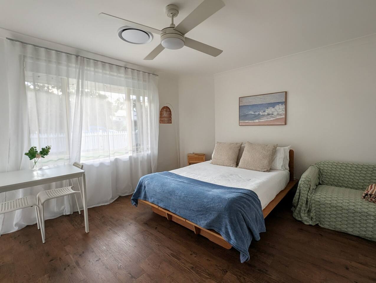 Welcome to your private studio in Sunrise, Byron Bay's most popular neighbourhood! Perfectly located near the trendy Arts & Industrial Estate, you're just a 10-minute walk from the beach, vibrant cafes, local boutiques, and the famous Solar Train. The Space Our bright and airy studio is designed to be your home away from home. Large windows fill the space with natural light, creating a warm and welcoming atmosphere. Wake up to birdsong and the sound of the ocean before enjoying a coffee in your private garden. Inside, you'll find a comfy queen bed and two fold-away mattresses (a king single and a single) that are perfect for friends, siblings or children. For your comfort, the studio has AC split type ductless system and heating, super-fast Starlink internet, and a 40-inch smart TV with Netflix, Foxtel (Sports), and Prime Video. The kitchenette is equipped for simple meals with a stove burner, microwave, toaster, kettle, and fridge. We've also stocked it with local treats like Byron Bay Coffee and Byron Bay Cookies. For rainy days, you'll find a great selection of board games. Guest Access Enjoy complete privacy with your own separate entrance, and self check-in. The door has a smart lock, so you don't have to worry about carrying around keys. 24/7 check-in is available. The day of check-in we automatically send you a personal door code. Your exclusive, fully fenced garden is the perfect spot to relax in the hammock, enjoy a meal cooked on the BBQ, or rinse off after the beach in the beautiful outdoor shower. We provide two bikes for you to explore the area like a local. Free street parking is always available right in front of the house. If you prefer, we are happy to offer access to our gated driveway at no extra charge, just let us know. The Neighbourhood Forget fighting for parking! Our location in the Sunrise neighbourhood puts everything within easy reach. You can easily walk to: * The Beach: North Belongil Beach is just a 10-minute stroll away. * Food & Drink: Discover amazing cafes, restaurants, and the North Byron Hotel pub all in a short walk. * Shopping & Wellness: Explore local boutiques, a supermarket, and several gyms, yoga and pilates studios. * Recreation: A large park with a playground and basketball court are just around the corner. Getting Around * Solar Train: A 10-minute walk (through the shortcut) takes you to the station for a scenic, direct ride into the heart of Byron Bay. * Bike: Use the complimentary bikes for a leisurely 15-minute ride to town. * Car/Rideshare: Town is a quick 5-minute drive or a short Uber ride away. * Bus: A nearby bus stop connects you to other local hotspots like Brunswick Heads with the famous Brunswick Hotel and their live music. Pets * Approved dogs welcome for an additional fee. Message before booking. Important Information * Privacy: The studio is attached to our family home but is completely self-contained with a private entrance and garden. There are no shared walls with our main living spaces or bedrooms. There is one security camera in the front of the house. * Kitchenette: Please note the kitchenette does not have a conventional oven or an indoor kitchen sink. A single stovetop burner and BBQ is provided for cooking. * Laundry: While there is no washer in the studio, a laundromat is just a 5 minute walk away. * Provided for Your Stay: We include beach towels, a beach umbrella, yoga mat, Bluetooth sound system, iron, and a clothes steamer. * Registration Number: PID-STRA-69500